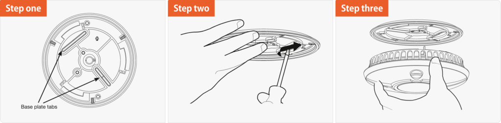 WARNING: It’s crucial to be aware that removing the smoke alarm from its base plate will deactivate the unit, rendering it unable to detect smoke.